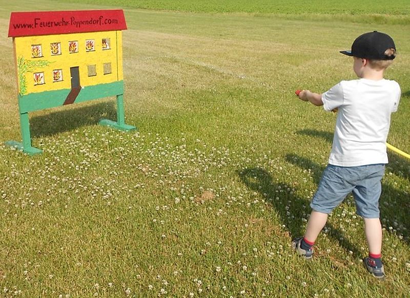 Am 31. Mai war es endlich soweit und wir konnten die Feuerwehr in Poppendorf besuchen. Wir wurden von drei Feuerwehrmännern sehr herzlich empfangen. Als erstes teilten wir uns in zwei Gruppen auf. Dann konnte eine Gruppe ein Feuer löschen. Die Kinder mussten durch einen Tunnel kriechen und mit einer Wasserpumpe ein Feuer löschen. Die andere Gruppe konnte einen Helm aufsetzen, Kinderatemgeräte begutachten und Handschuhe ausprobieren. Wir konnten uns anschauen, wie lang und schwer ein Löschschlauch ist. Die Kinder waren sehr glücklich, so viele interessante Details über die Feuerwehr zu erfahren.