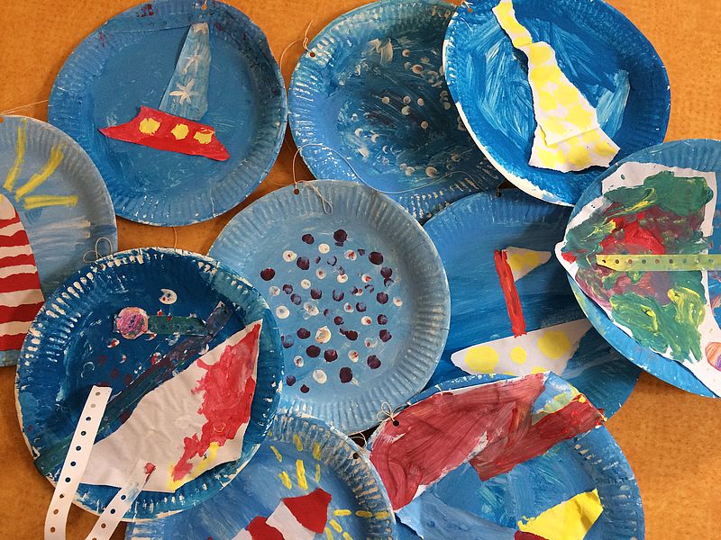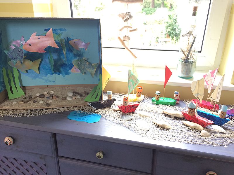 Auch in der Kita "Wiedenhoff" zieht das maritime Flair nicht einfach vorbei ohne Spuren zu hinterlassen. Passend zum Thema "Wasser" und "Hanse Sail" haben sich Kinder und Erzieher der Kita in den letzten Wochen kreativ austoben können.