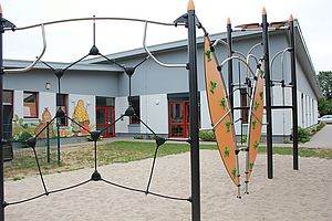 Seit Juni dürfen sich die Hortkinder der Kindertagesstätte "Kleine Schlossgeister" aus Gelbensande über einen neuen Spielplatz freuen. Das direkt vor dem Hort-Gruppenraum befindliche Klettergerüst lädt mit vielfältigen Möglichkeiten zum Klettern, springen und toben ein.