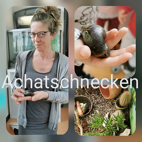 Vor vier Wochen durften wir in unserer Einrichtung "Bunti", "Schnecki" und "Gery" begrüßen. Wir wurden von einer Mutter eines unserer betreuten Kinder überrascht, die diese Tiere aus einem Zooladen in der Nähe erwarb. Die afrikanischen Riesenschnecken werden bis zu 30 cm lang und ihre Häuser bis zu 20 cm. Ihr beeindruckendes Erscheinungsbild weckt nicht nur Neugierde, sondern sie wirken zudem, durch das Beobachten der langsamen Bewegungen und das Anfassen der weichen, feuchten Haut, beruhigend auf Kinder und Erwachsene. Die Pflege übernimmt Angela Seidler (auf dem Bild links), die das Aquarium kurzerhand zu einem Terrarium umfunktionierte. In einigen Monaten werden wir das Wachstum der Schnecken auf dieser Plattform festhalten und sehen, ob die Riesenschnecken so groß, wie wir es erhoffen, geworden sind.