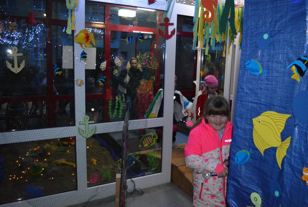 Begrüßt wurden alle mit einem Theaterstück vom Regenbogenfisch, welches die Erzieherinnen der Einrichtung spielten. Nach dieser Reise ging es in die Welt des Regenbogenfisches. Dort warteten auf die Besucher zahlreiche Bastel- und Mitmachstände, leckere Speisen und heiße Getränke zum Aufwärmen. Abgerundet wurde das Fest mit dem traditionalen Fackelumzug durch den Haffring. Müde und mit vielen neuen Eindrücken und Erinnerungen gingen alle Freunde des Meeres nach Hause.