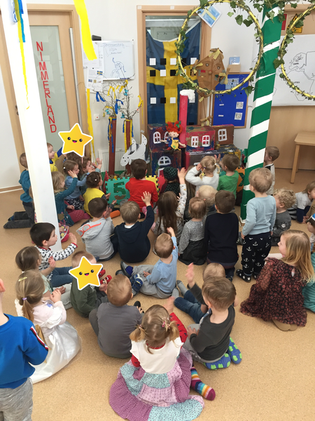- Donnerstag begingen wir das „Mittsommerfest“. Viele Kinder kamen dazu in den schwedischen Farben oder in Gestalt von Pippi, als Elch oder als Wikki,der Wikinger, gekleidet. Eine Mutter, welche in Schweden studiert hatte, machte die Kinder mit der Sprache bekannt. Unter unserem Mittsommerbaum gabe es dann eine schöne Party mit Haferkeksen und getanzt wurde nach der Musik von ABBA und Pippi.