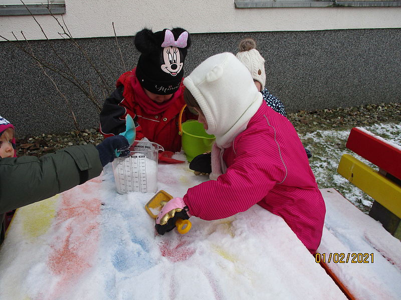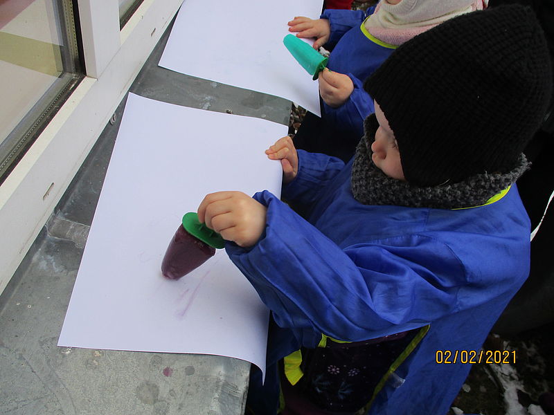 Selbst hergestellte Meisenknödel aus Eis, malen mit selbstgemachten Eisstiften, oder eine Schatzsuche im Schnee. Diese und ähnliche Angebote konnten unsere pädagogischen Fachkräfte mit den Krippengruppen in dieser Woche durchführen. Eine Winterzeit, wie sie im Buche steht.