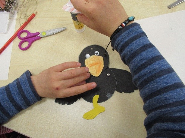 Nach einer lustigen Geschichte von „Rabe Socke“ bastelten die Kinder ihren eigenen Lese-Raben.