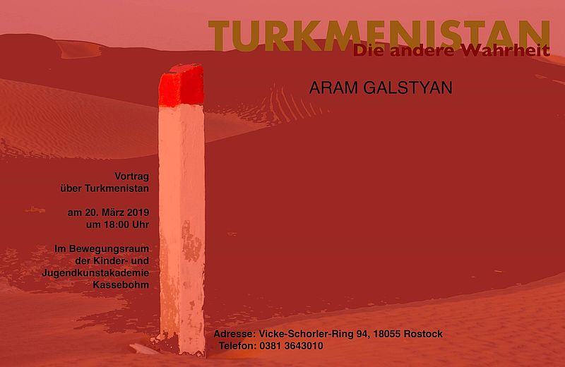 Am Mittwoch, den 20.03.19, lädt Sie recht herzlich der Freizeitbereich zum Vortrag von Herrn Galystan über Turkmenistan ein. Der Schülförderverein bietet hierzu Snacks und Getränke für einen kleinen Taler an.
