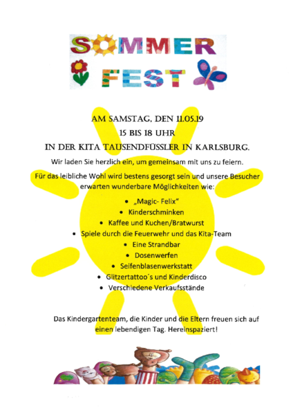 Sommerfest in der Kita Tausendfüßler in Karlsburg