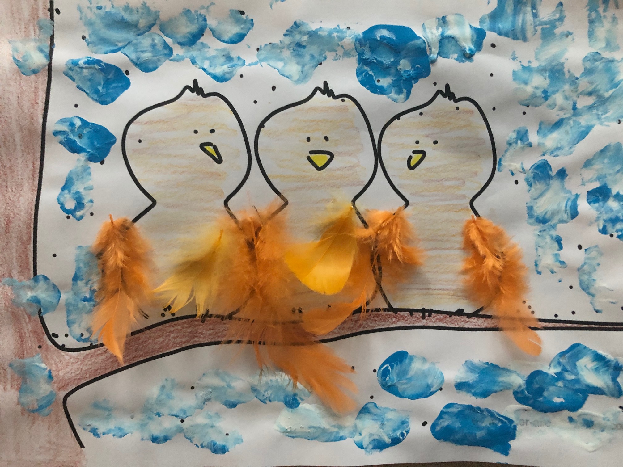 In unserer Kinderkrippe beschäftigen sich die Kleinen während des kalten Wetters ausgiebig mit dem Gedicht "Die drei Spatzen".