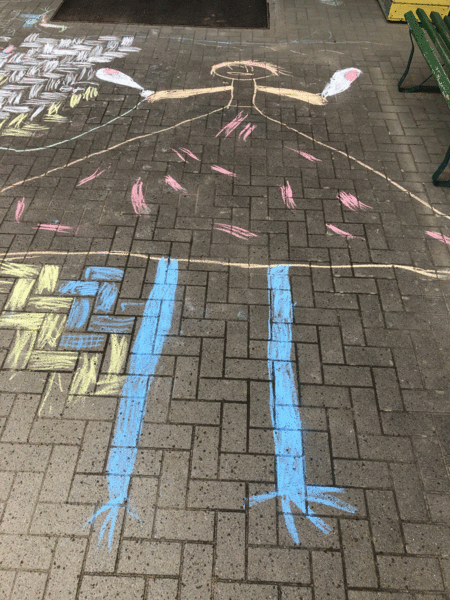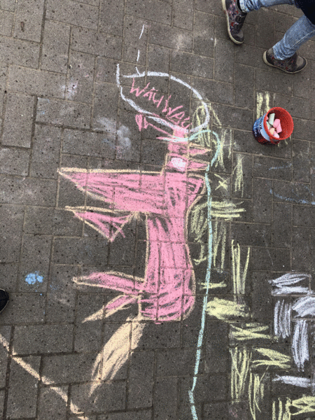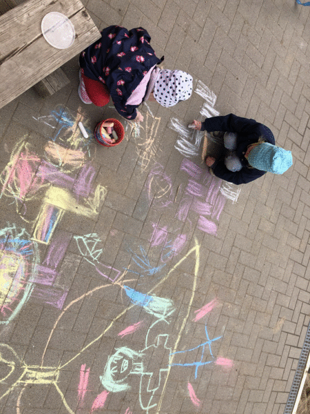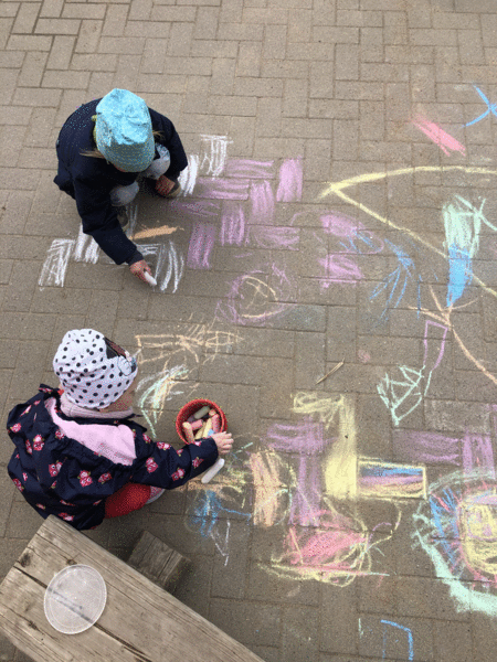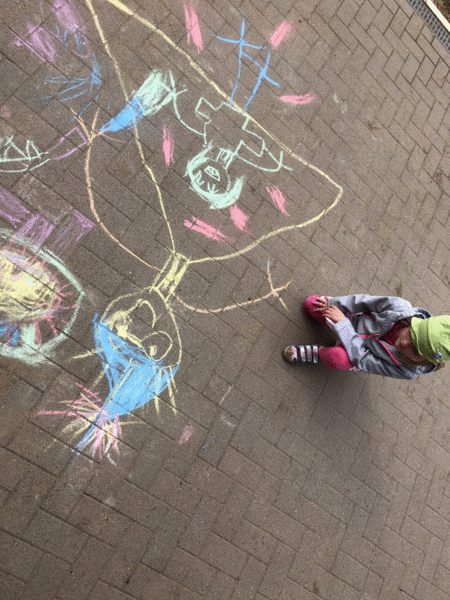 Seit dem das Wetter draußen immer schöner wird, kommt auch die von den Kindern geliebte Straßenmalkreide wieder zum Einsatz!