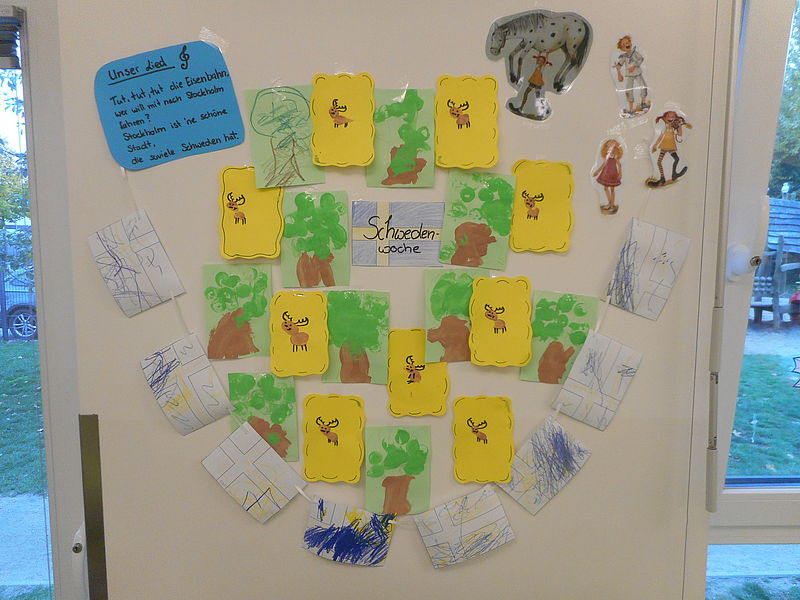 In der Krippe wurden schwedische Flaggen bemalt und kleine Elche gestempelt. Auch Pippi Langstrumpf hatte, in Form eines Stabpuppentheaters, ihren Auftritt.