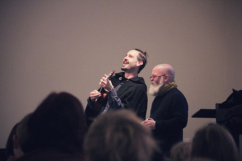 Lustig und lehrreich wurde der Besuch von einem kleinen Schauspiel eingeleitet, bei dem der Komponist Modest Mussorgsky und sein guter Freund der Maler Viktor Hartmann darüber stritten, ob nun Malerei oder Musik die bessere Kunst sei.