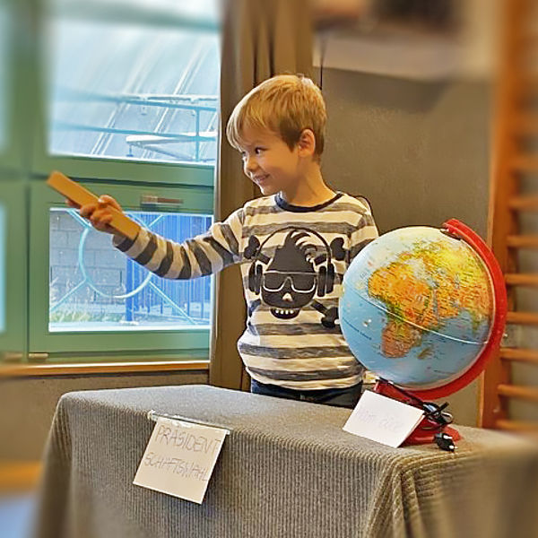 Die Begeisterung war riesig, jedes Kind wollte sich zur Wahl aufstellen lassen, am Ende fanden sich drei Präsidentschafts-Kandidaten per Losverfahren. Und jeder von ihnen durfte später eine Wahlrede halten, in der sie ihr „Wahlprogramm“ vorstellten. Per Handzeichen wurde dann entschieden, wer bei den „Klabauterkindern“ für die Amtsperiode von einem Tag neuer Präsident ist.
