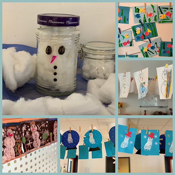 Die Kleinsten gestalten tolle Schneemänner im Glas oder aus ihren Fußabdrücken.