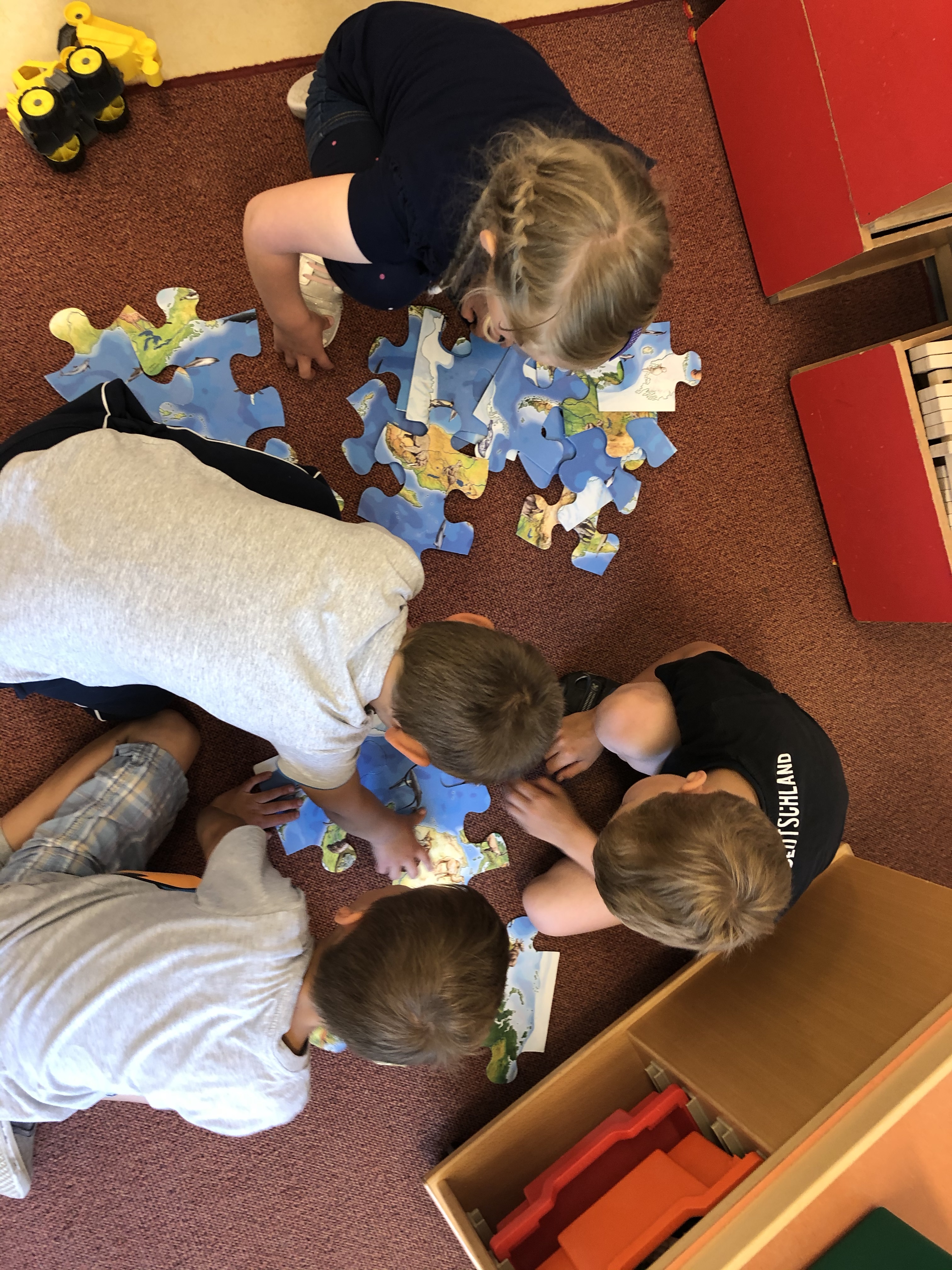 Innerhalb dessen beschäftigen wir uns intensiv mit den verschiedenen Kontinenten und Ländern unserer Erde, mit der bunten Flaggenvielfalt, den unterschiedlichen Lebensräumen von Menschen und Tieren aus aller Welt und mit fremden Kulturen und Traditionen.