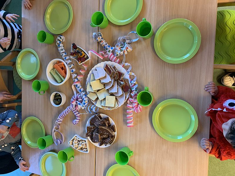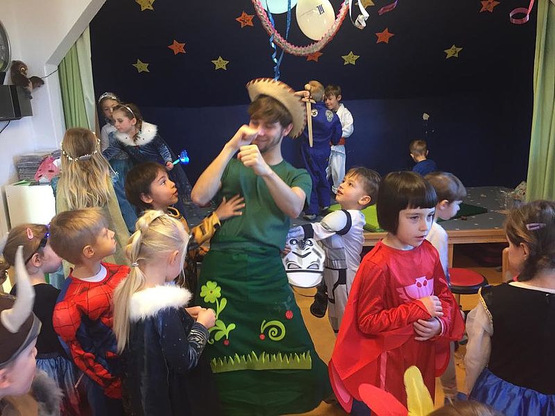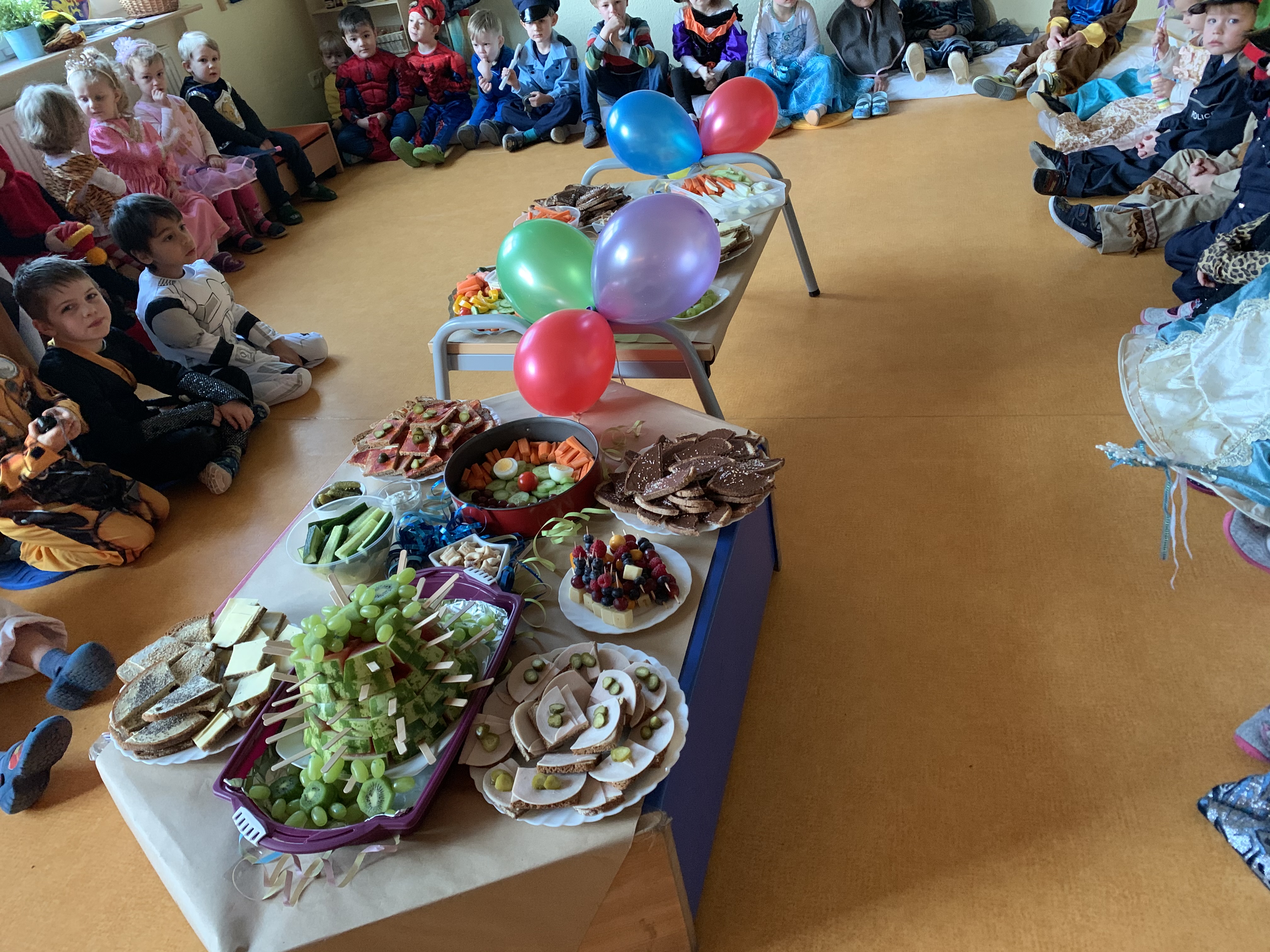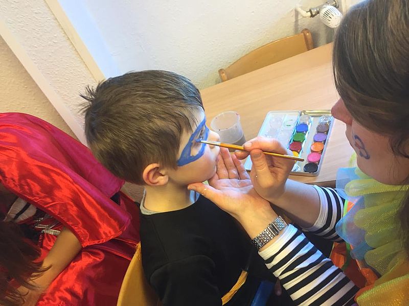 So feierten auch wir die "fasteloved" wie der Kölner sagen würde. Am 05.02.2020 Klingelten morgens an der Tür nicht wie üblich unsere Kita-Kinder, sondern es kamen Hexen, Prinzessinnen, Ninjas und vieles mehr. Unseren bunten Faschingstag begannen wir mit einem tollen Frühstücksbuffet. Dort warteten Gemüsesticks, viele verschiedene Brote, Obst und Salzbrezeln darauf von vielen kostümierten Kindern verzehrt zu werden. Mit lauter Karnevalsmusik, Luftschlangen und Luftballons ging das frohe Treiben weiter. Es waren viele Programmpunkte geplant. Als nächstes konnten sich die Kinder passend zum Kostüm auch noch schminken lassen oder kleine Tattoos auf die Hände malen lassen. Nachdem alle Kinder schön geschminkt wurden, wurde getanzt und gesungen. Eine Polonaise durch die Kita durfte natürlich auch nicht fehlen. Zum Abschluss der bunten Party machten wir gemeinsam noch eine Modenschau und gaben allen Kostüme die wohlverdiente Aufmerksamkeit. Nach dem Mittagessen ging es für alle Prinzessinnen, Piraten, Teufelchen und Engelchen ins Bett.