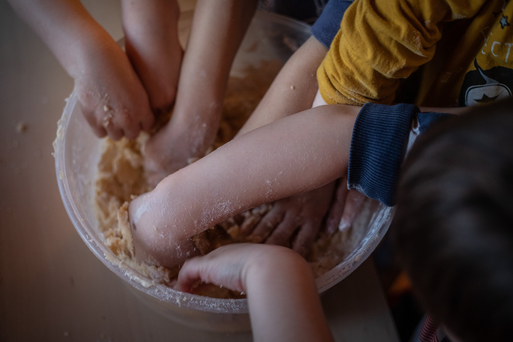 Am meisten Spaß machte ihnen das Kneten des Teiges…! Klar, da konnte man gleich mal ein bisschen vom Teig naschen. Wer würde denn auch bestreiten, dass das das Beste an der Weihnachtsbäckerei ist?