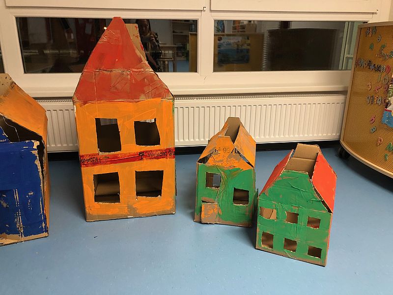 Unseren Kindern in der Notbetreuung mangelte es da jedenfalls nicht an Ideen. Neben selbstgemachten Seifenkisten und Fühlboxen entstand eine ganze Stadt aus Pappkartons. Neben dem Kindergarten gibt es eine Schule, eine Rettungswache und viele andere Gebäude, die darauf warten, entdeckt und bespielt zu werden.