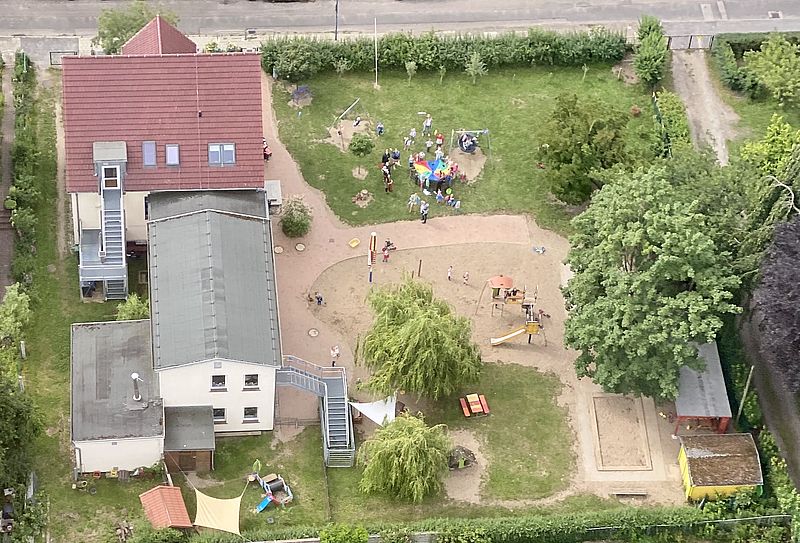 Hallo Frau Balschmiter, ich fliege gleich mit der Helikopterrettungscrew der „Christoph“ über Ihre Kita.