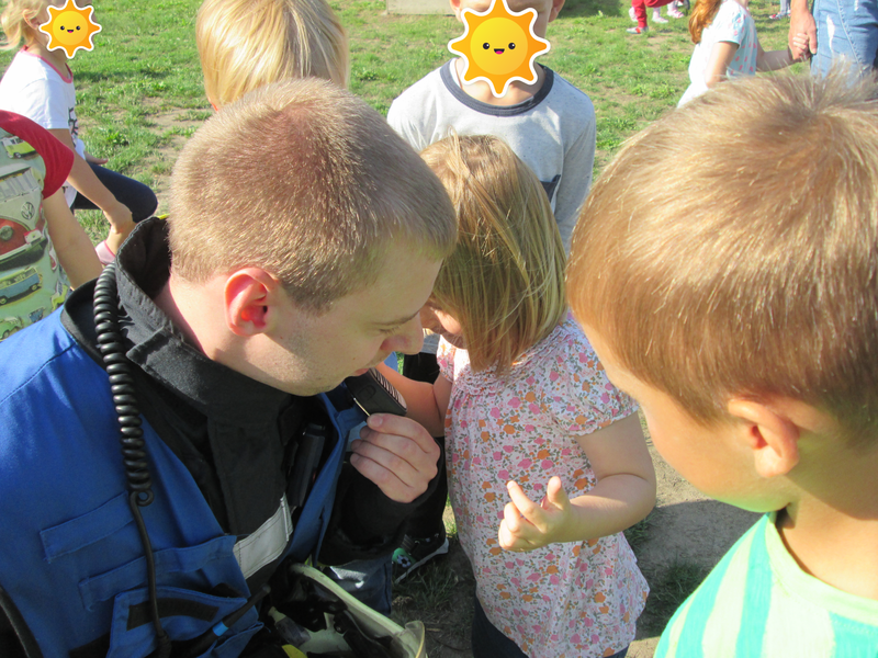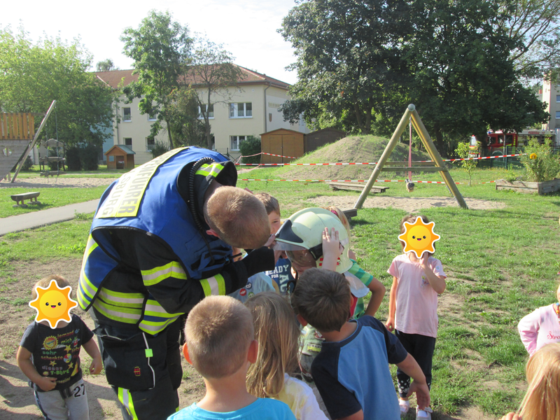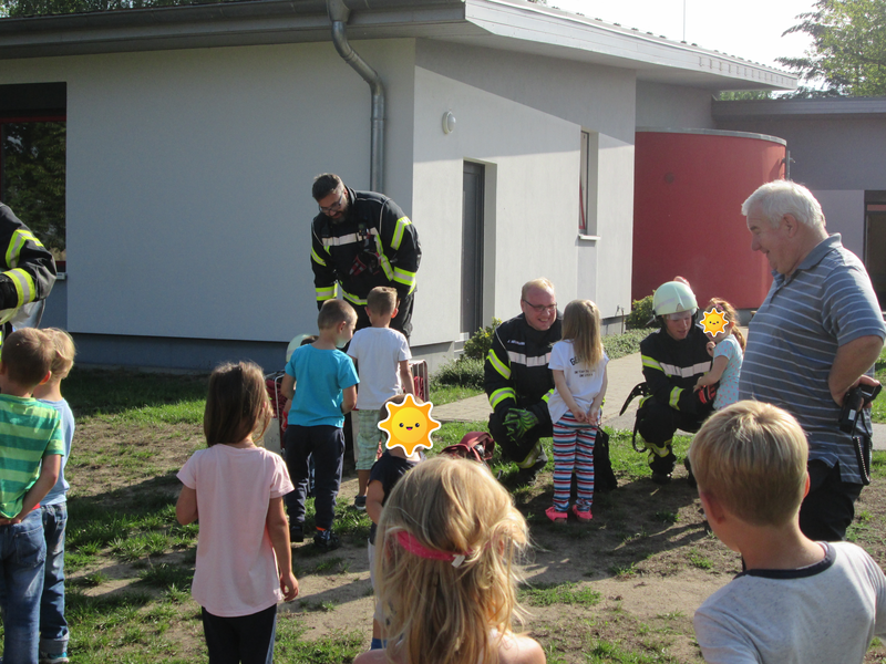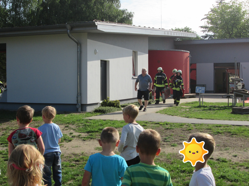 Die Männer der freiwilligen Feuerwehr Karlsburg kamen und rannten in unsere Kita! Doch welch ein Glück, sie stellten fest das es nur ein Fehlalarm war und kein Feuer ausgebrochen war!