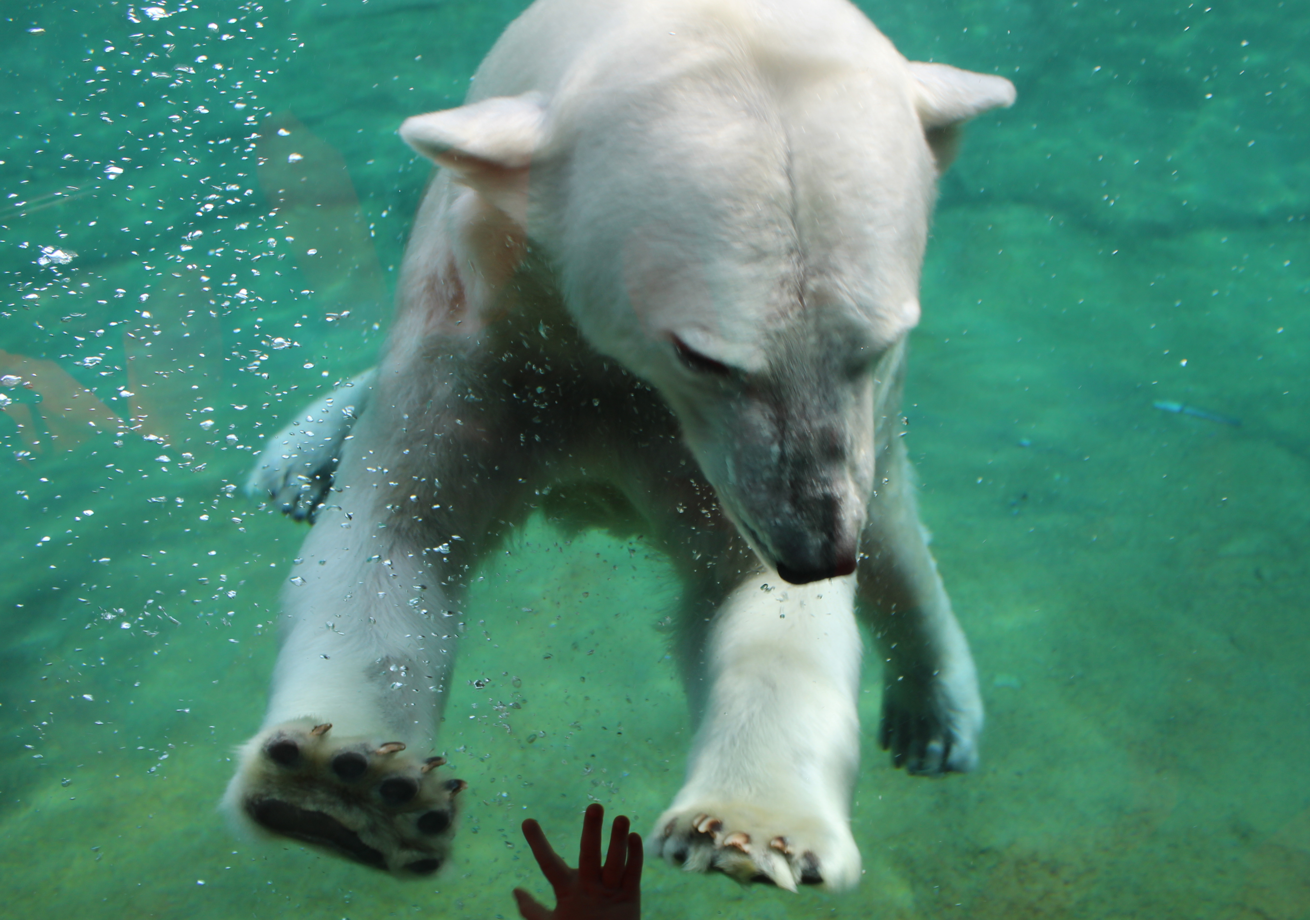 Im Zoo angekommen waren die Highlights natürlich die Pinguine und die Eisbären. Ganz erstaunt waren sie über die schwimmenden Eisbären, die ganz dicht am Schaufenster vorbei schwammen. Es war ein spannender Ausflug, der mit einem zünftigen Picknick im Dahliengarten und einem leckeren Eis auf dem Spielplatz endete.