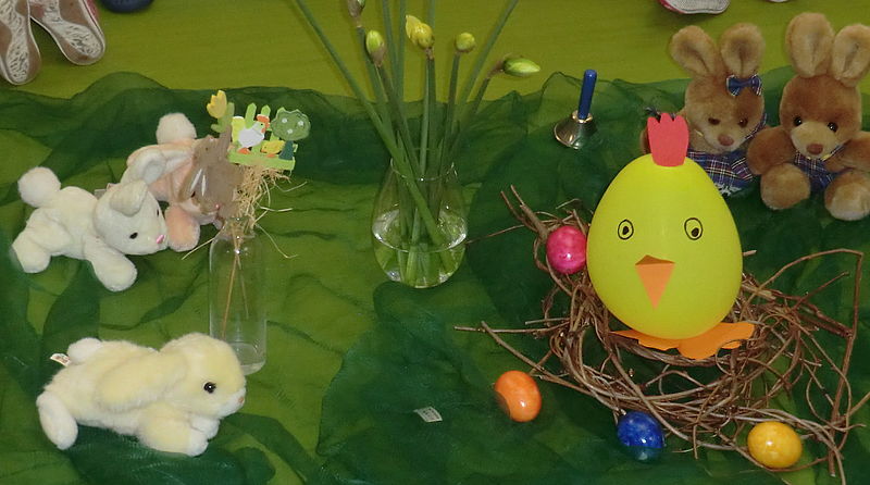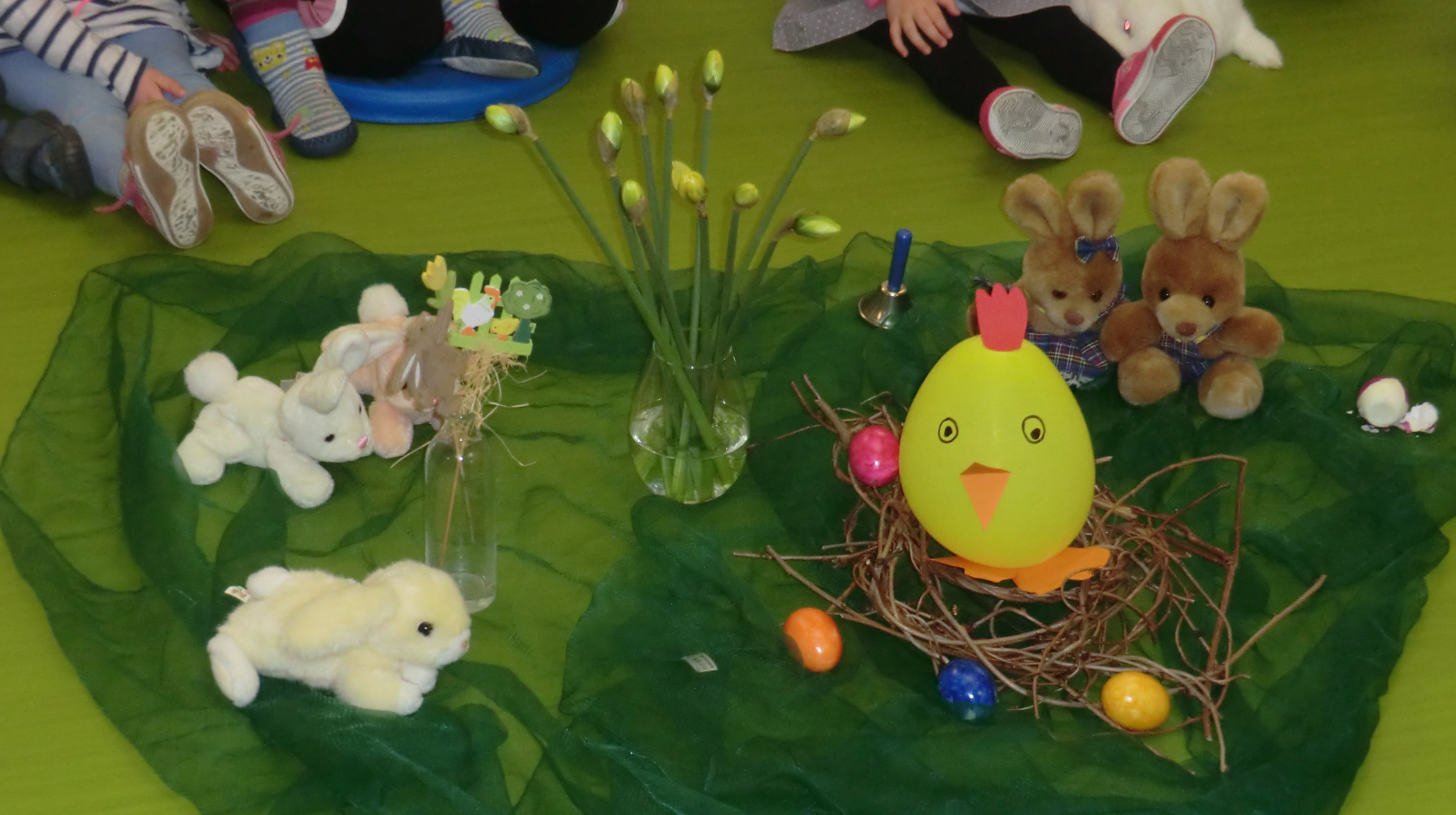 Ach du dickes Ei! ... auch in unserer Kita wurden die Ostertage mit einer kleinen Osterfeier eingeläutet. Sogar der Osterhase persönlich kam kurz "vorbeigehoppelt". Was für eine Freude! Nach diesem Besuch wurden auf dem Kitagelände und in der näheren Umgebung große und kleine Osterüberraschungen gesichtet.