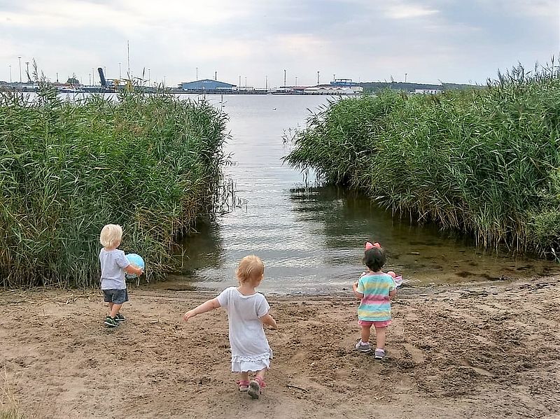 Zudem gibt es am Ufer in Groß Klein Dorf eine Wasserstelle mit einem kleinen Sandabschnitt. Hier haben die Kinder im Wasser tolle Ostseebewohner entdeckt und beobachtet, wie beispielsweise Quallen und krebse.