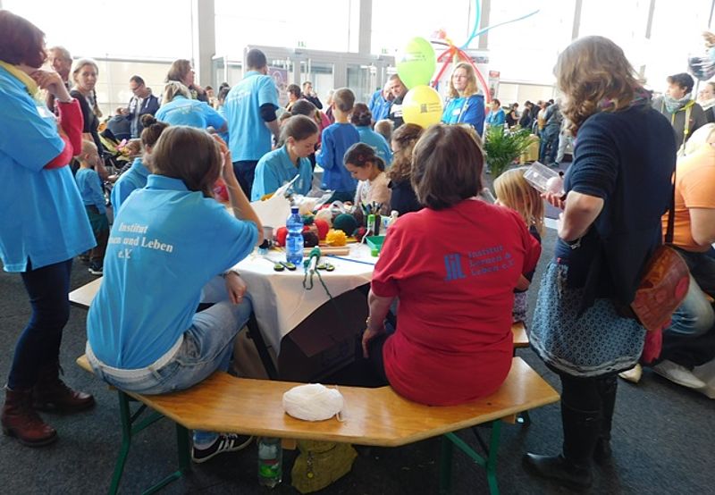 In Halle 1 stellte sich das Institut Lernen und Leben e.V. den Messebesuchern vor. Interessierte konnten sich über die Arbeit des ILL und das Konzept der Kreativitätspädagogik informieren und sich sogar praktisch davon überzeugen lassen.