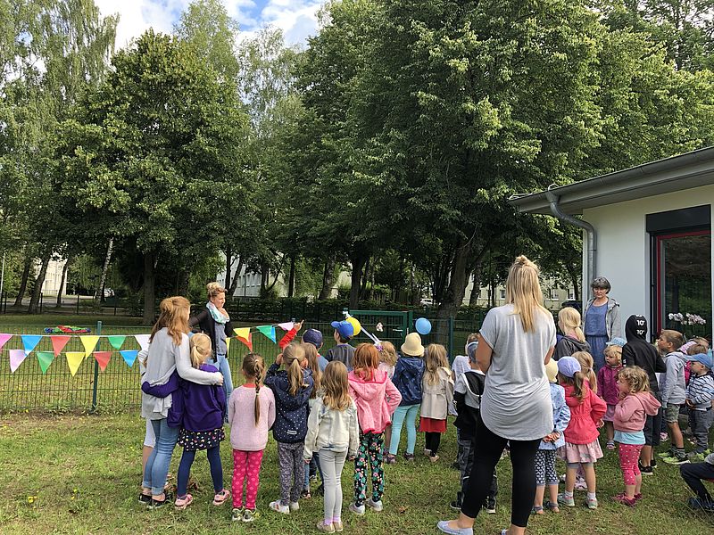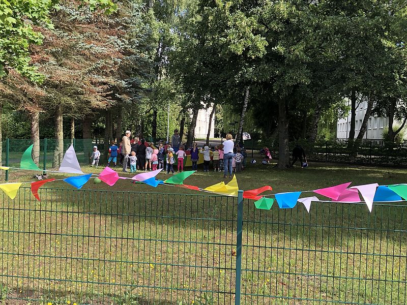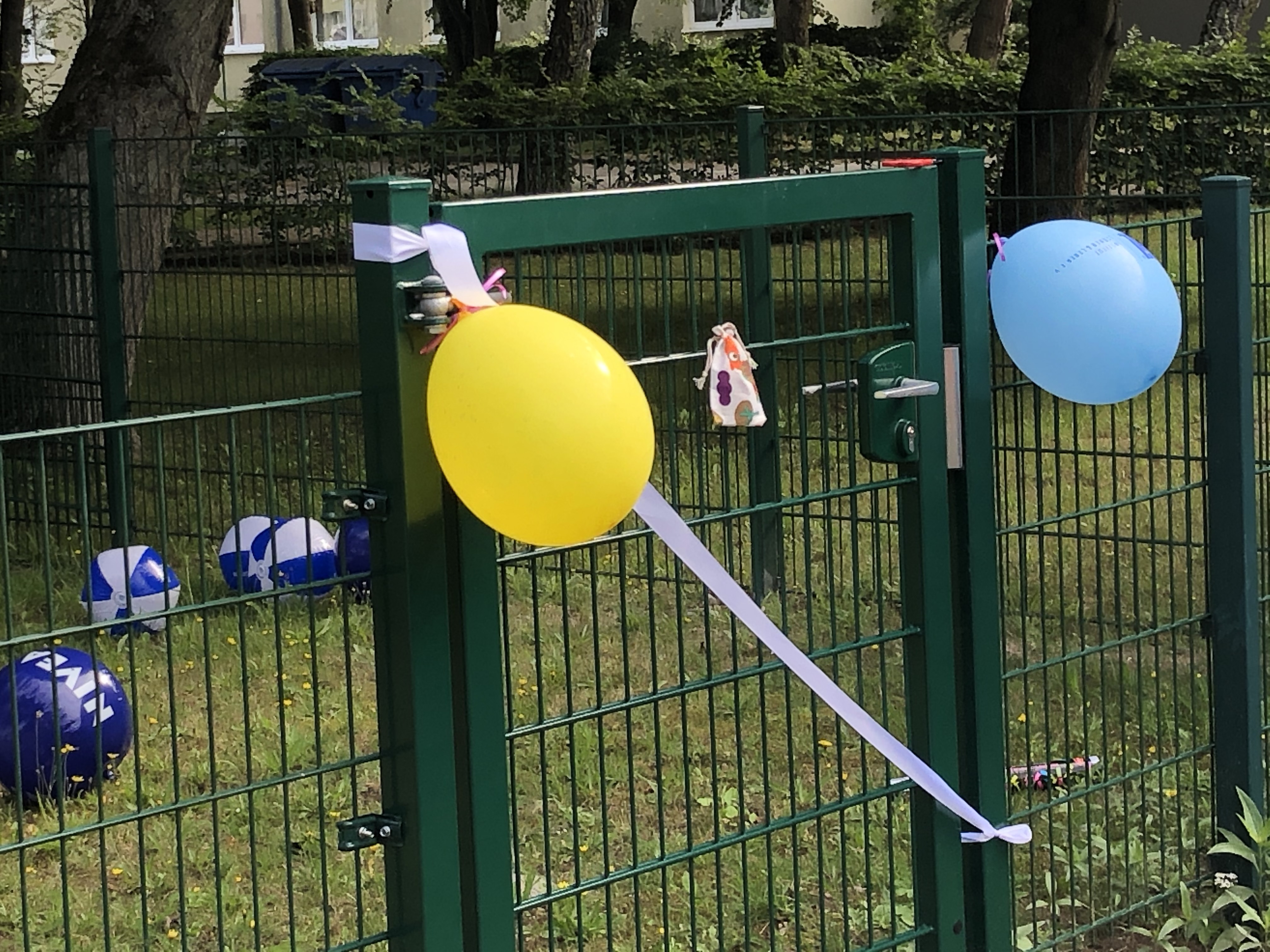 Die Hausmeister waren fleißig und haben unser Kitagelände durch einen Zaun erweitert. Dieser Platz ist für Kinder und Erzieher von großem Wert, denn es ist einer der weinigen Orte, der uns im Hochsommer ein wenig Schatten spendet.