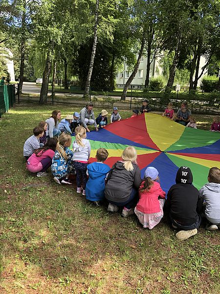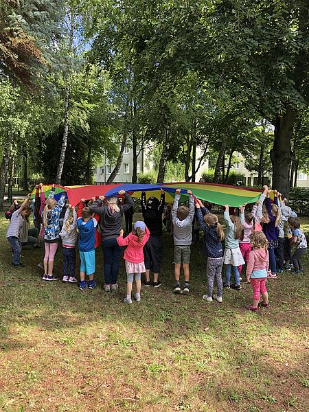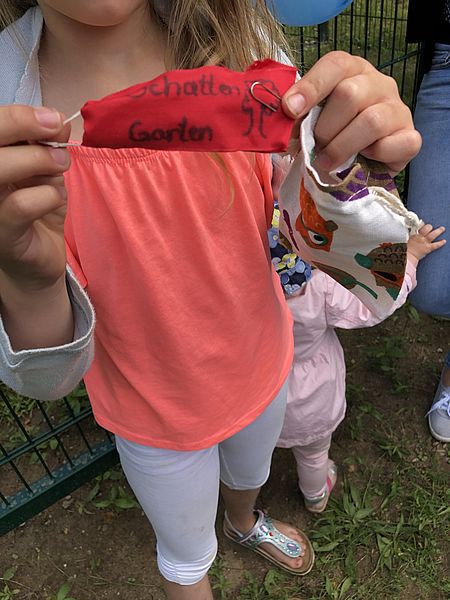 Der Schattenplatz wurde nun heute mit Schlüsselübergabe, Durchtrennen des Absperrbandes, Yoga rund um den großen Baum und ein paar Spielen mit dem Schwungtuch von den Kindern übernommen.