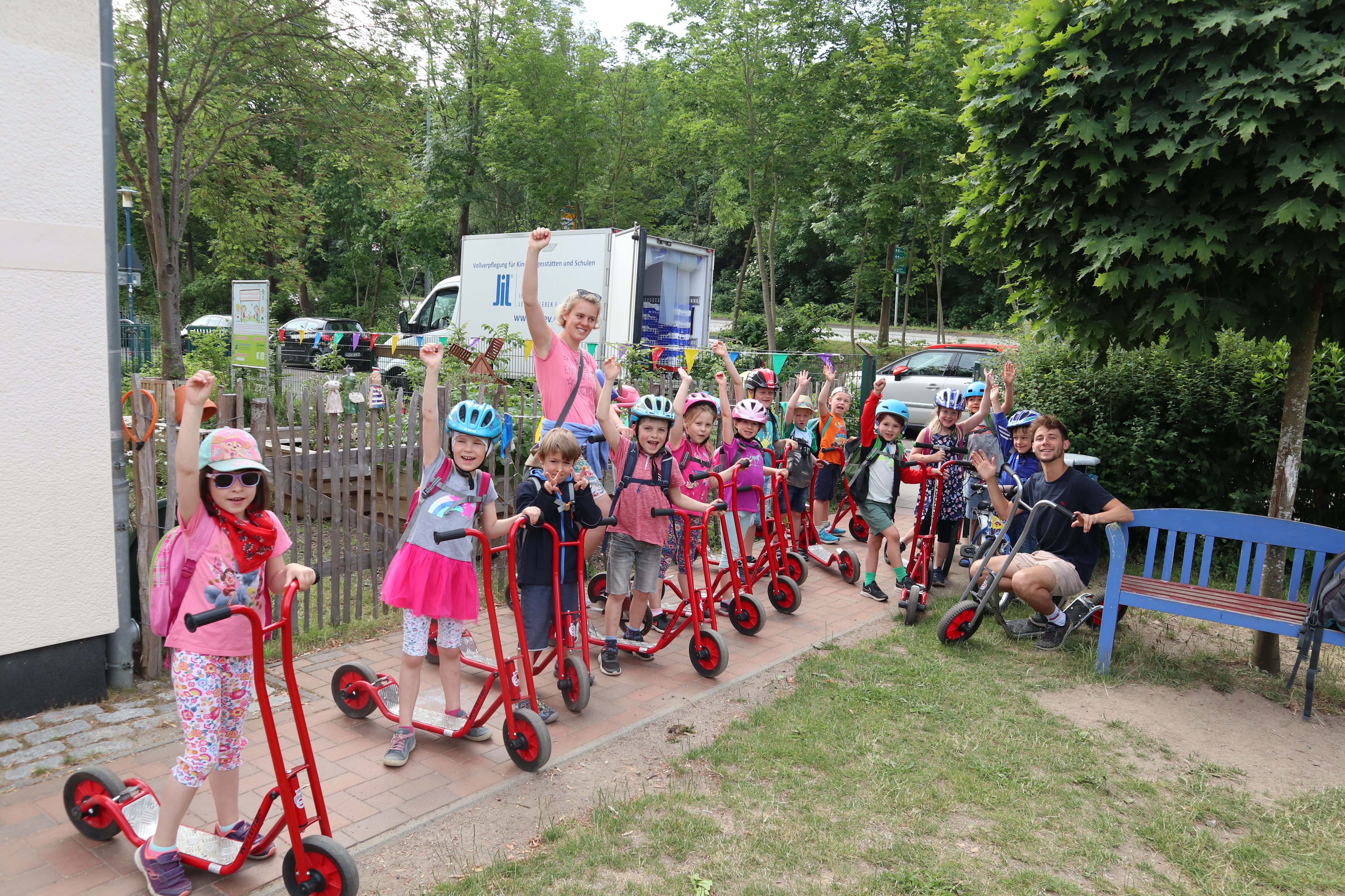 es ist viel schöner sich selbst zu bewegen. Das haben wir uns gesagt und unsere Roller geschnappt. 6 km von der Kita an der schönen Warnow lang sind wir auf Tour gegangen. Ein unvergessenes Abschlussfest als Tagesausflug mit vielen bunten Spielüberraschungen.