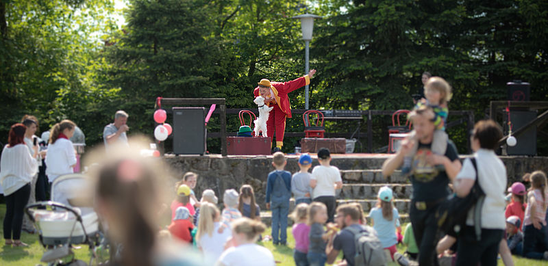 Das Highlight des Festes war „Holly´s Showtheater“. Mit Tricks, Musik und Zauberei verwandelte er die Augen der Zuschauer in leuchtende Sterne. Auch einige Eltern wurden in das Programm mit einbezogen und hatten viel Spaß bei dieser Aktion.