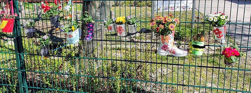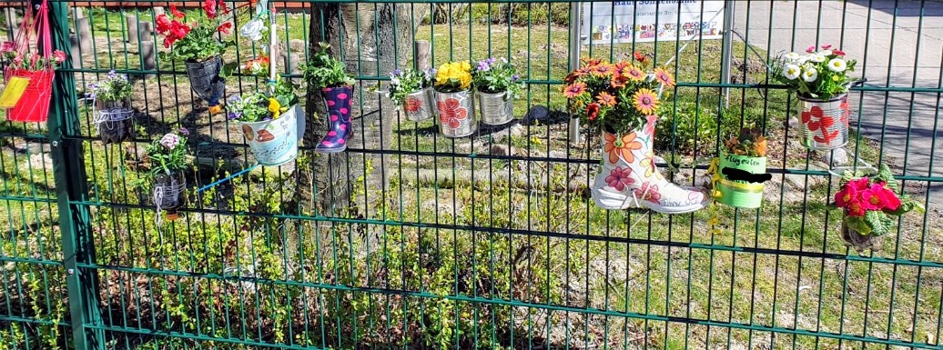 Wir haben uns überlegt, ein Zeichen für unseren Zusammenhalt zu setzen. Wir würden uns freuen, wenn Sie mit Ihren Kindern einen alten Gummistiefel oder eine Konservendose gestalten und mit einer Pflanze verzieren! Die Kunststücke können sie mit Hilfe eines Kabelbinders an unseren Kita- Zaun befestigen.