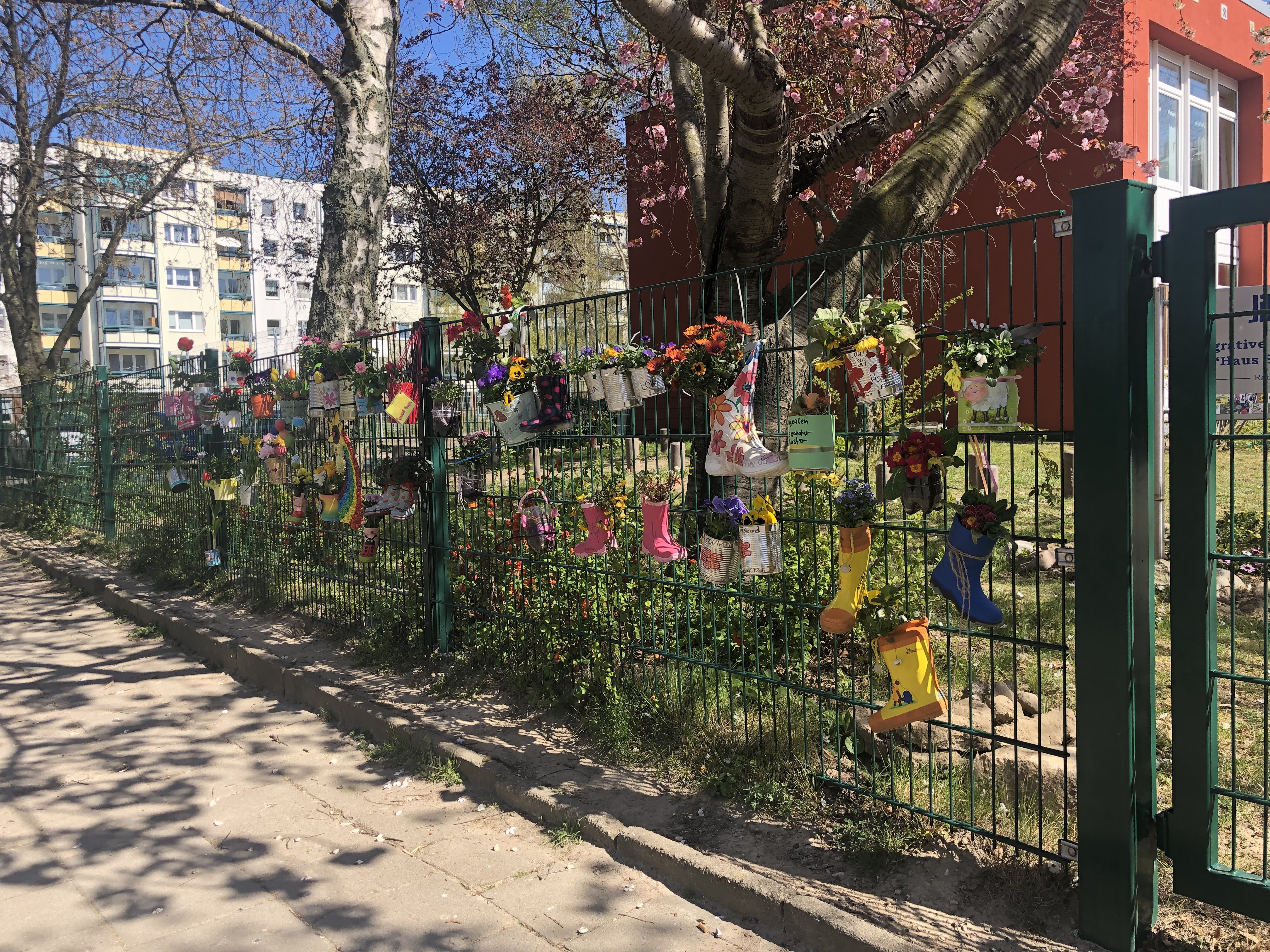 auf diesem Wege möchten wir uns für die zahlreiche Beteiligung bedanken. Schon kurz nach unserem Aufruf hingen die ersten Stiefel und Dosen an unserem Zaun. Viele weitere kamen dazu und erfreuen nun nicht nur uns sondern auch die Nachbarschaft.