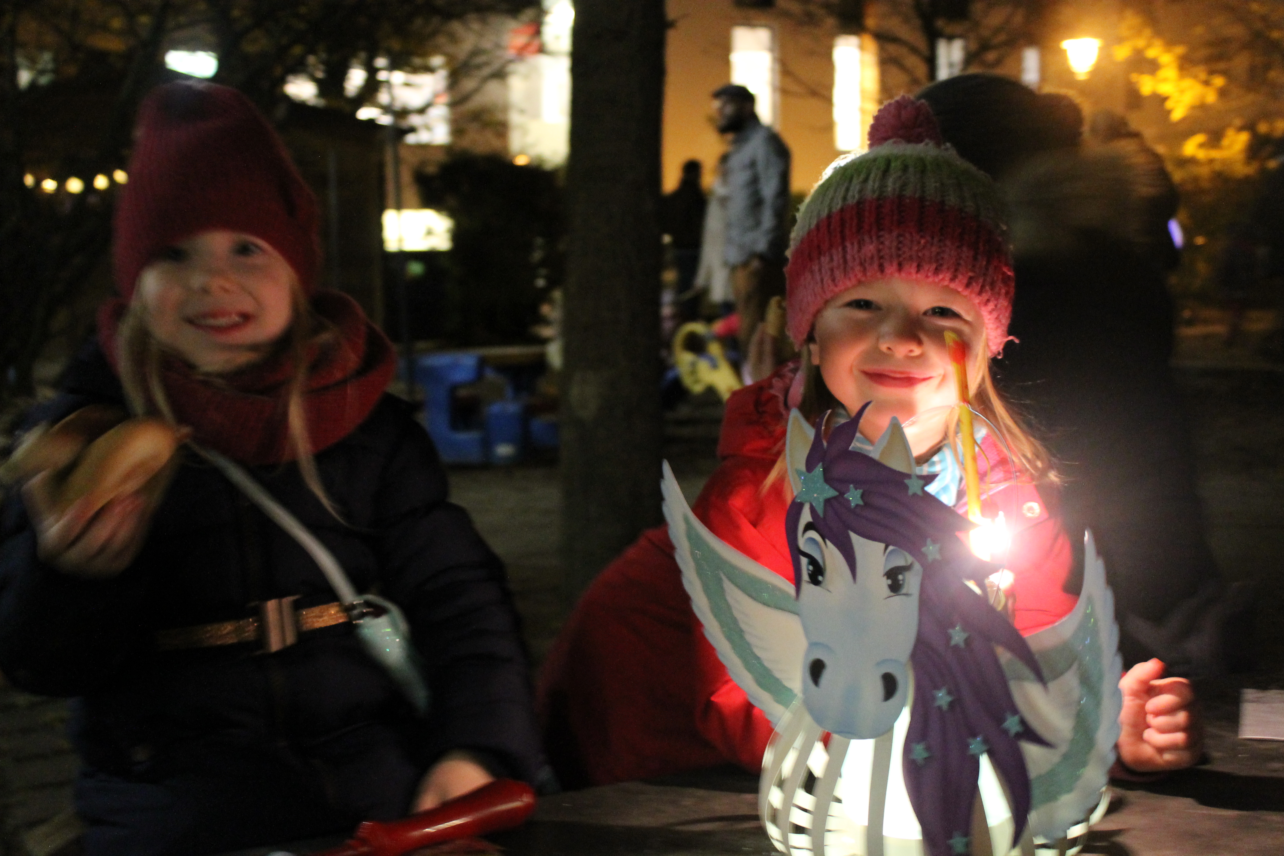 Auf dem leuchtend geschmückten Hof gab es Bratwurst, Waffeln und Schmalzbrot. Unsere Kinder konnten über Feuerschalen gemütlich Stockbrot rösten und die Dunkelheit mit ihren wunderschönen Laternen erhellen. Damit zogen wir dann, unterstützt von einer Blaskapelle, durch die Rostocker Altstadt.