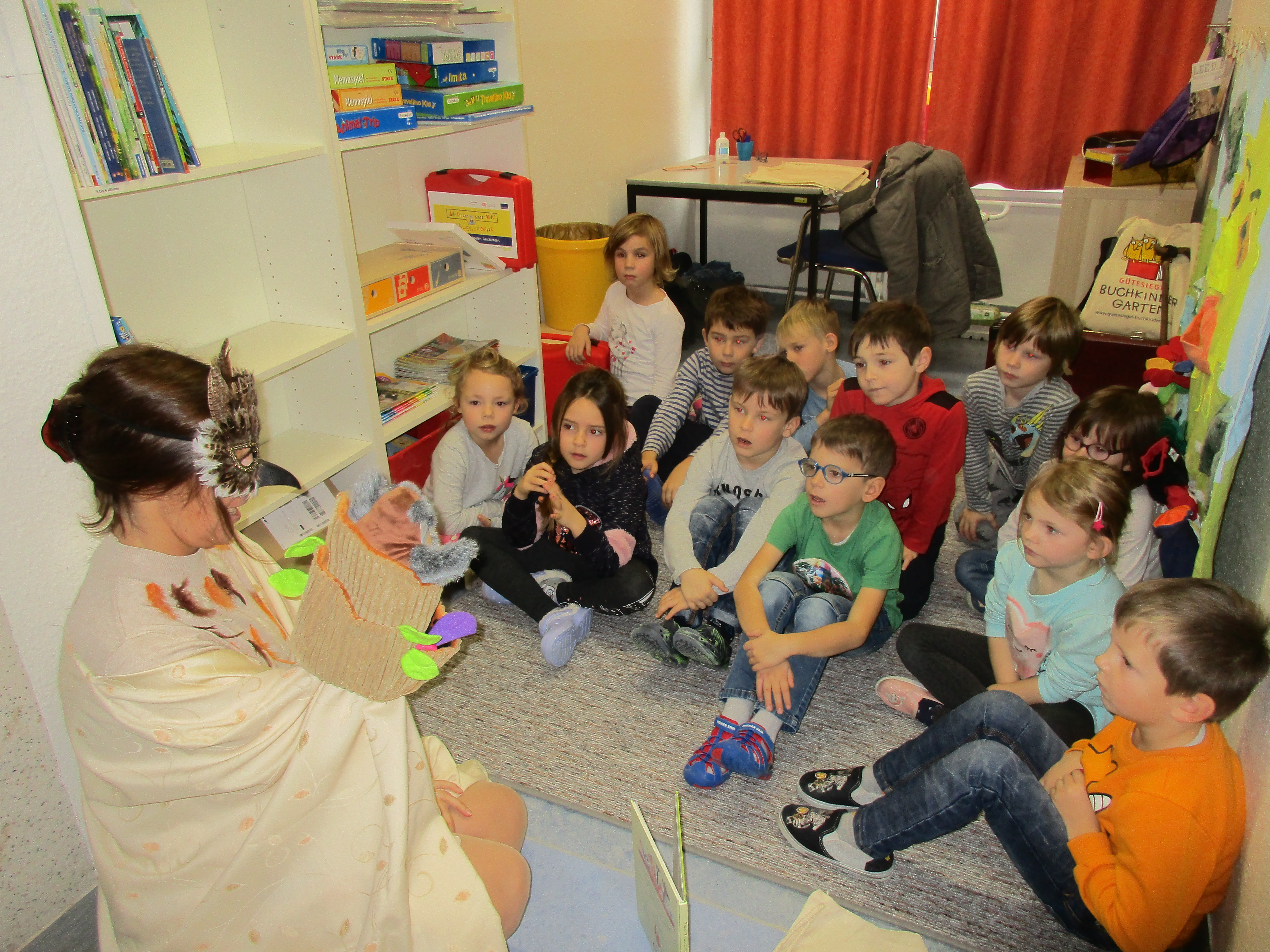 Es war die Leseeule, die von Gruppe zu Gruppe flog, um den Kindern die Kinderbibliothek vorzustellen.