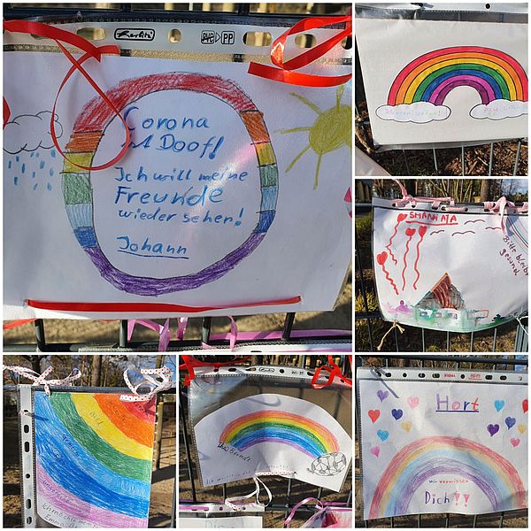 Inspiriert von der Internetaktion, Regenbögen als Zeichen der Hoffnung in Zeiten der Corona-Krise in die Fenster zu hängen, hat unser Hort ebenfalls einen Aufruf gestartet: