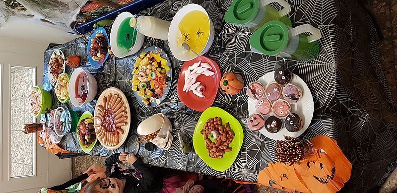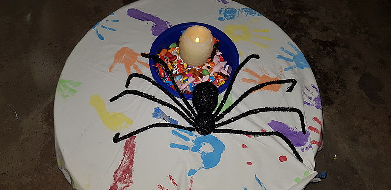 Ein besonders großes Dankeschön geht an Sandra und Swetlana, die unseren alten Keller in ein "Gruselkabinet" für Kinder verwandelt haben. Alle Kinder hatten so viel Spaß und konnten sich süßes unter einer riesengroßen Spinne erkämpfen, fassten mutig in Tastboxen indenen guselige Dinge lagen. Aber ich möchte auch den Eltern danken, die wiedermal sehr fleißig waren und viele leckere Dinge für das Bufett, aber auch zum Dekorieren mitgebracht haben.