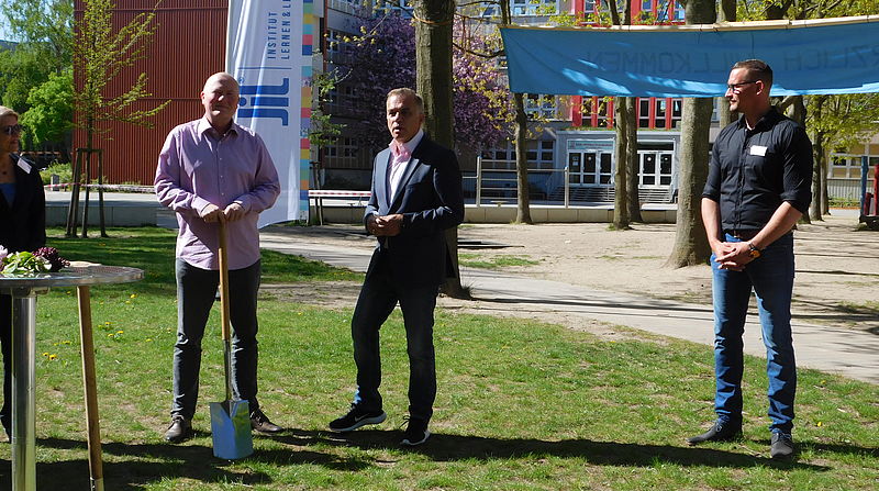 Auf dem Grundstück der Erich-Weinert-Schule wird es in gut einem Jahr unter der Trägerschaft des Instituts Lernen und Leben e.V. ein neues Hortgebäude geben, in dem auch eine neue Kita untergebracht sein wird. Für den symbolischen ersten Spatenstich griffen dafür am Montag, dem 7. Mai, Dirk Scheer, Sozialdezernent des Landkreises Vorpommern-Greifswald und ILL-Geschäftsführer Sergio Achilles zum Spaten.