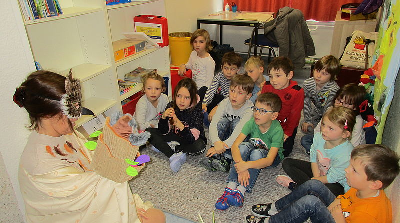 Es war die Leseeule, die von Gruppe zu Gruppe flog, um den Kindern die Kinderbibliothek vorzustellen.
