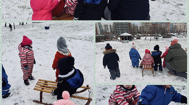 Noch immer liegt eine Menge Schnee bei uns in Negast...daher machten unsere Waldameisen heute einen Ausflug zum Rodelberg. Als der Aufstieg geschafft war, rodelten die Kinder auf ihren Porutschern den Berg hinunter. Wer so mutig war gemeinsam mit einem Erzieher zu rutschen, konnte sich auf eine rasante Abahrt vom Rodelberg freuen. Wir sind gespannt wie lange uns der Schnee noch erhalten bleibt.