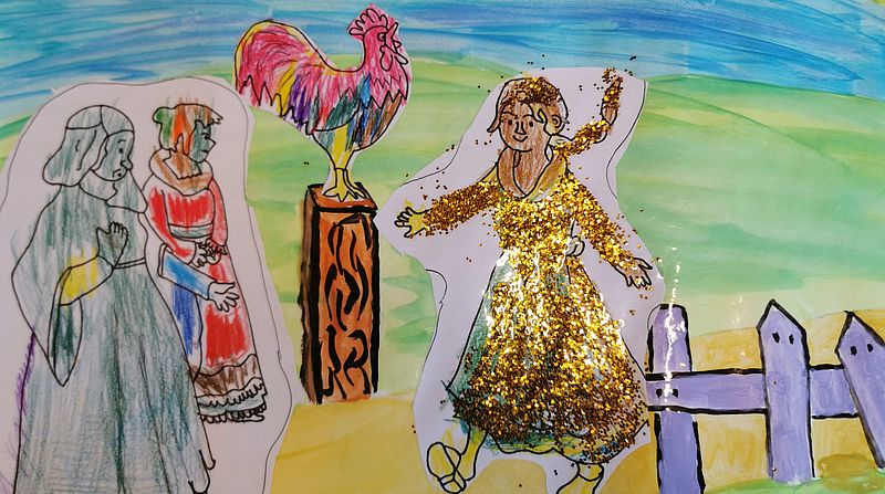Mitte September startete die Einsteingruppe der Kita "Entdeckungskiste" ein Märchenprojekt, in dem die vier- bis fünfjährigen Kinder alle drei Wochen ein neues Märchen kennenlernen und bearbeiten. Das erste Märchen war "Frau Holle" und während dieses Märchens durften die Kinder schon, wie die fleißige Goldmarie, Brote backen und Apfelmus stampfen. Zum Abschluss von "Frau Holle" hatten die Kinder viel Arbeit in ein selbst gebasteltes Geschenk gesteckt!