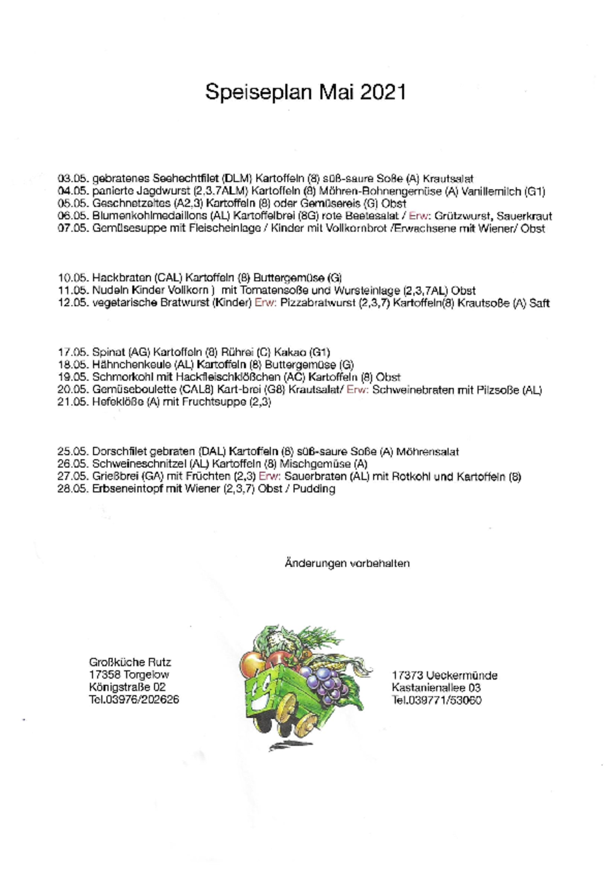 Der Preis für ein Mittagessen beträgt ab 01.01.2021 für die 1. - 4. Klasse