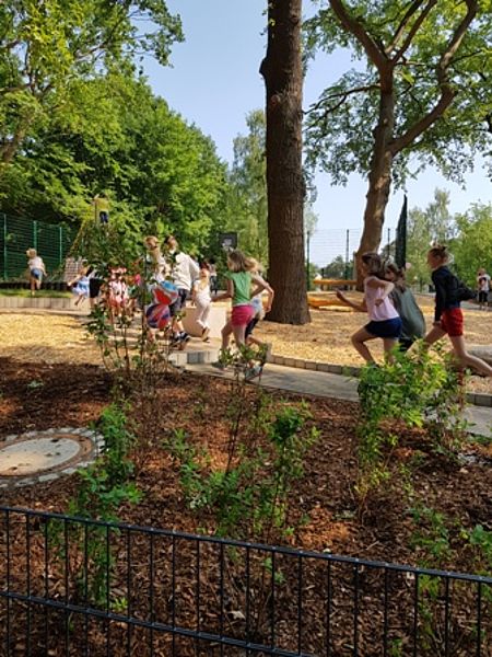 Endlich wurde der neue Spielplatz eröffnet, auf den die Kinder schon so lange gewartet hatten!