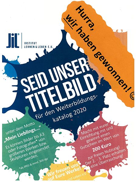 Mehr als 100 Kunstwerke gingen ein, für die in den Einrichtungen tüchtig gepinselt, geklebt, fotografiert, arrangiert oder gepuzzelt wurde. Künstlerische Grenzen gab es für die kleinen Künstler nicht. Das symbolische Krönchen erhielt schlussendlich der "Hort in der bernsteinSchule". Unser Werk, welches Antonio sehr detailreich gestaltete, wird das Titelbild des neuen Weiterbildungskataloges 2020. Dazu gab es einen frei verwendbaren Wertgutschein in Höhe von 200 Euro.