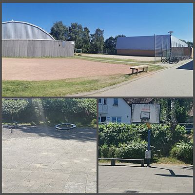 Eine große Freifläche mit Basketballkorb, Bolzplatz, Rollerstrecke und kleinen Rasenflächen befinden sich auf dem Hortgelände. Unser Hof bietet somit vielerlei Funktionsecken und Platz für Bewegungsspiele. Wir betreuen Kinder der bernsteinSchule und Kinder der Pestalozzi-Förderschule.