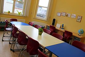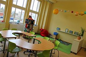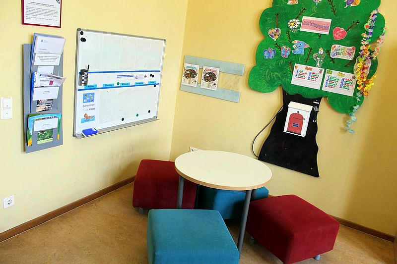 Auch die Aula des Schulgebäudes kann von uns nach Absprache genutzt werden. Unsere Räume sind hell, freundlich, altersgerecht mit neuen Möbeln ausgestattet und lassen den Kindern viel Bewegungsfreiheit sowie Platz für Kreativität. |