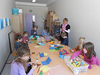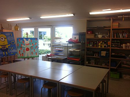 Das Atelier bietet Kindern, die gern malen und gestalten, die Möglichkeit sich kreativ zu betätigen. Kreativ sein bedeutet, schöpferisch tätig zu werden, Ideen zu entwickeln, Fantasien zu entfalten und umzusetzen. Kinder haben unterschiedliche Vorgehensweisen den vielfältigen Sinneswahrnehmungen einen individuellen Ausdruck zu verleihen. Das Atelier stellt unseren Kindern vielfältige altersgerechte Materialien zur Verfügung, die ihnen frei zugänglich sind. Die entstandenen Kunstwerke der Kinder werden in Räumen und Fluren der Schule ausgestellt. Die Freizeitpädagogen/innen fördern vielfältige künstlerische Betätigungen unserer Schüler und respektieren ihre frei gewählten Themen und Inhalte.