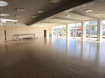 Ähnlich wie die Sporthalle ist der Bewegungsraum der Austragungsort vieler Kurse am Nachmittag. Durch seine offene und lichtdurchflutende Bauweise lädt er zum Toben und Spielen ein. Kurse wie Leichtathletik, Taekwondo, Tischtennis oder Muay Thai haben hier ihr Zuhause.
