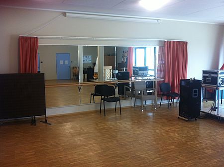 Der Tanz- und Theatersaal gibt den Kindern Raum sich kreativ auszuprobieren. Von Theater, Tanz bis hin zu musikalischen Kursen wie Rock & Pop sowie Chor bietet der Saal verschiedenste Möglicheiten. So können zum Beispiel mit Hilfe der großen Spiegelwand, Tänze einstudiert oder schauspielerische Ideen getestet werden.