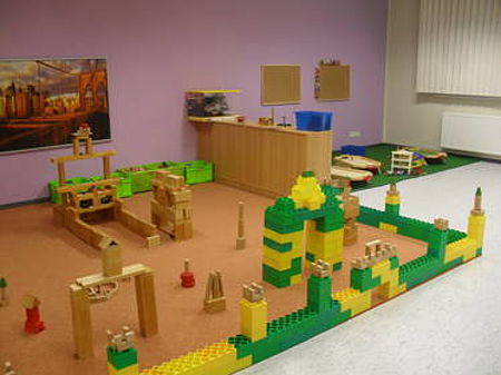 In der Baustelle widmen sich unsere Kinder der Architektur und Statik. Bausteine aus Holz und Plastik laden dazu ein, Brücken, Türme, Mauern und andere Fantasiebauwerke zu bauen.