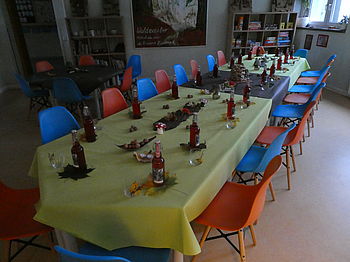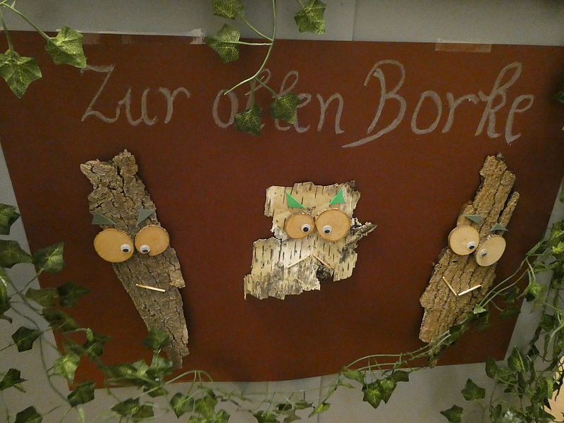 Oh wie stürmte es und schüttete es an diesem Freitagabend. Zum Glück fanden die 20 Waldbewohner in der ollen Borke einen Unterschlupf für die Nacht. Der Hotelleiter Herr Rübezahl und seine Gehilfen waren Top vorbereitet. Jeder Gast bekam zur Einstimmung einen Waldmeister eingeschenkt. Versorgt wurden unsere Gäste mit deftiger Hausmanskost. So wurden sich die Wänste mit köstlichen Ofenkartoffeln und würzigen Bratwürsten vollgeschlagen.